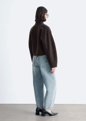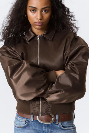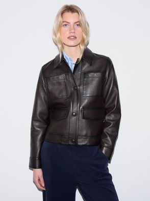 Cropped Pure Nappa Leather Jacket, Dark Brown