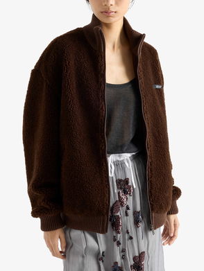 Funnel-Neck Embroidered Logo-Patch Wool Blend Fleece Jacket