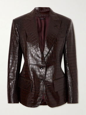 Pinstripe Padded-Shoulder Wool-Blend Blazer