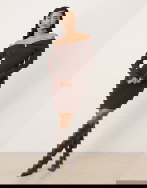 Abercrombie & Fitch Knitted Off Shoulder Mini Dress With Hardware Detail In Brown