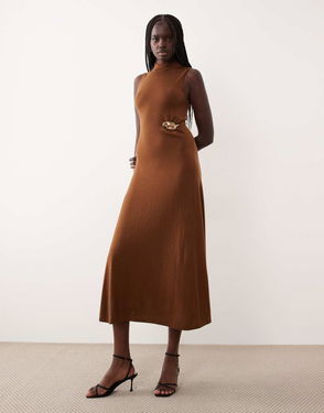Sleeveless Maxi Dress With Hardware Detail In Mid Brown