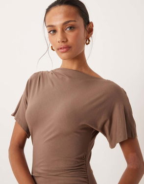 Niamh Jersey Fallen Shoulder Midi Dress In Brown