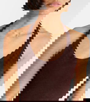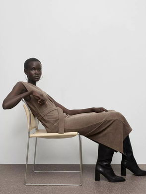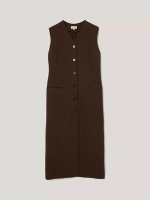 V-Neck Pure Suede Pinafore Mini Dress, Brown