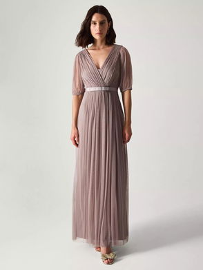 Abercrombie & Fitch Beaded Bandeau Maxi Dress In Brown Sequin