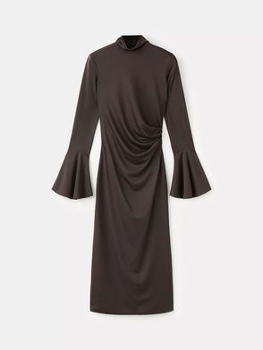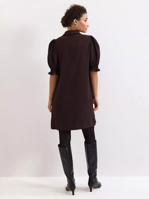 Tie Neck Long Sleeve Mini Dress In Chocolate