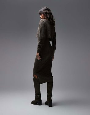 Sabine 2 In 1 Knitted Dress With Cardigan In Brown