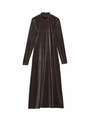 Velvet Funnel Neck Maxi Dress, Chocolate