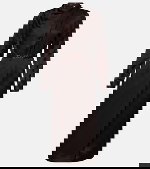 Midaxi Dress With Fringe Wrap Asymmetric Hem In Dark Brown