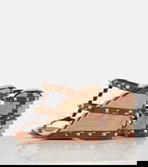 Rockstud Textured-Leather Espadrille Wedge Sandals