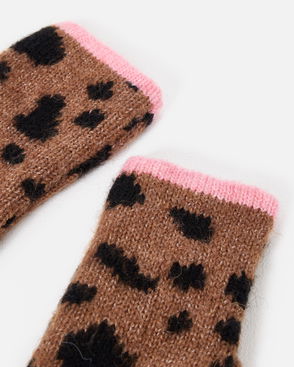 Brown & Black Spotty Animal Print Knitted Gloves