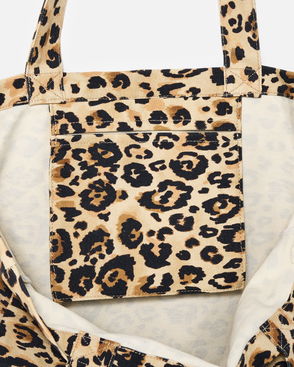 Brown Leopard Print Logo Fabric Tote Shopper Bag