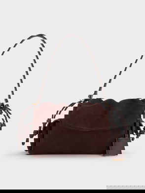 Khai Recycled Suede Ruched-Flap Side-Pocket Top Handle Bag