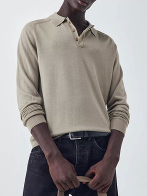 Merino Wool Polo Neck Jumper, Laurel Oak
