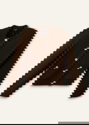 Puff Shoulder Wool Rich Cardigan, Dark Brown