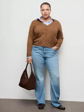 Cotton Bracelet Sleeve Cropped Cardigan Warm Chocolate