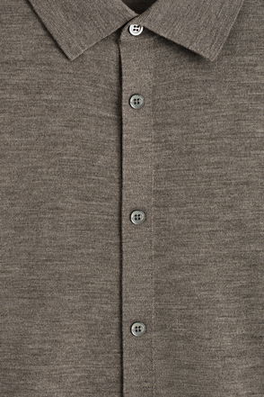 Cotton Knit Collar Zip-Through Cardigan, Chocolate