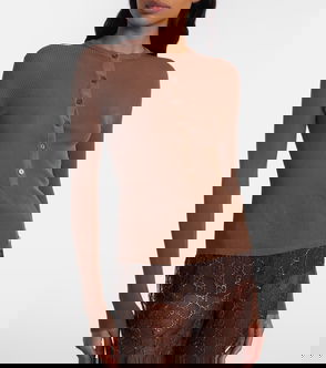 Wool Knitted Oversized Sweater With Deep Rib Hem In Brown