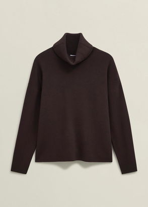 Louanna Relaxed Funnel Neck Wool Rich Jumper, Brown