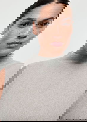 Merino Wool Knitted Semi Sheer Long Sleeve Top In Brown
