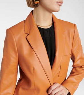 Oversized-Collar Sheepskin Leather Aviator Jacket