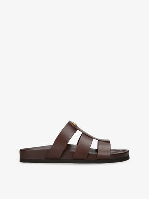 Gen-FF Mens Stitch-Detail Two-Bar Tumbled-Leather Slides