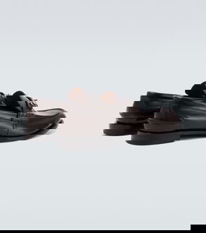 Chocolate Logo-Plaque Brushed Leather Loafers