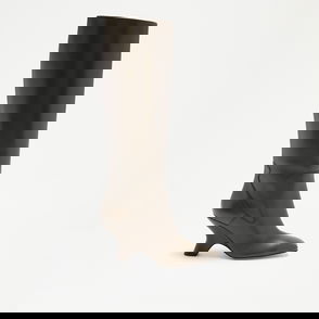 The Wide Shaft Crocodile-Embossed Leather Heeled Boots