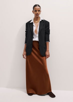 Satin Bias Cut Floor Length Skirt Burnt Caramel