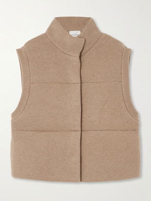 Bead-embellished Shearling-trimmed Padded Quilted Suede Down Jacket