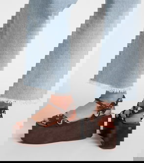 Lucia Suede Flatform Closed Toe Fisherman Sandals, Tobacco