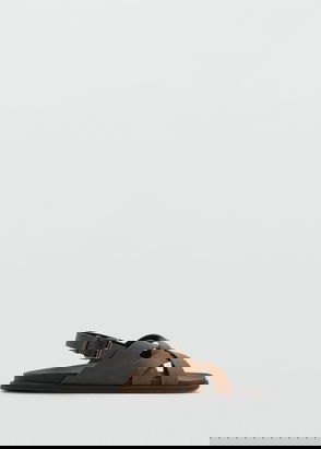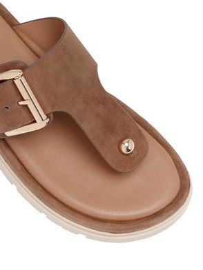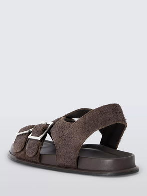 Lavender Suede Cross Strap Buckle Footbed Sandals, Chocolate