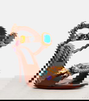 Sorrento Scarf Wedge Sandals, Brown Mid