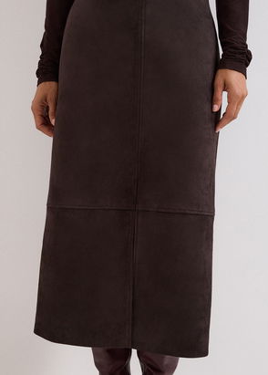Rowan Suedette A-Line Midi Skirt, Chocolate
