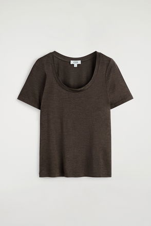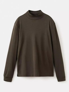Luton Cotton Slim Fit High Neck T-Shirt, Dark Brown