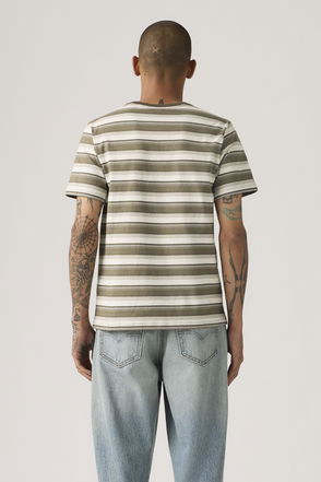 Two-Way Zip Stripe Slim Tee Cream/Ganache Brown