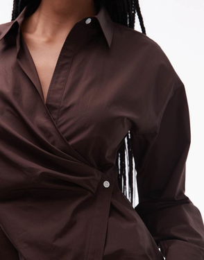 Jaguar Oversized Cotton Poplin Shirt, Brown