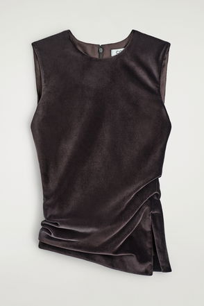 Chocolate Brown Velvet Shirred Bodice T-Shirt