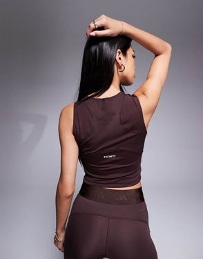 Structured Open Back Peplem Hem Top Co-ord In Chocolate