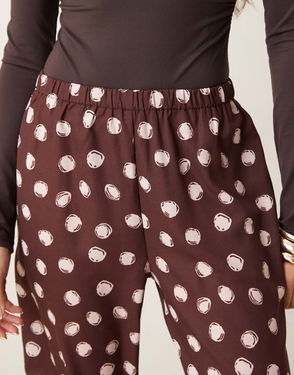 Illume Stretch Waist Straight Leg Trousers In Brown Spot Print