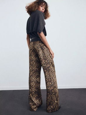 Piedra Leopard Print Satin Trousers, Brown