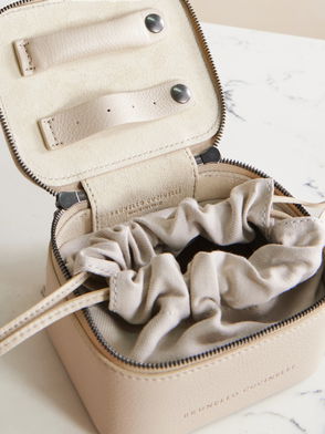 Leather-trimmed Suede Cosmetic Case
