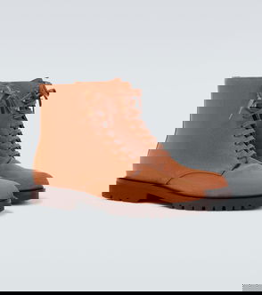 Bead-embellished Shearling-trimmed Leather Ankle Boots