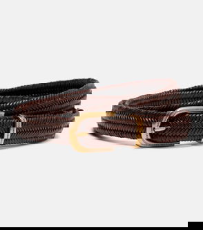 Bead-Embellished Leather-Trimmed Braided Cotton-Blend Belt