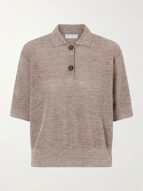 Ribbed-Knit Linen And Cotton Polo Sweater