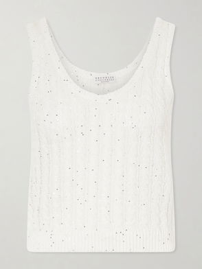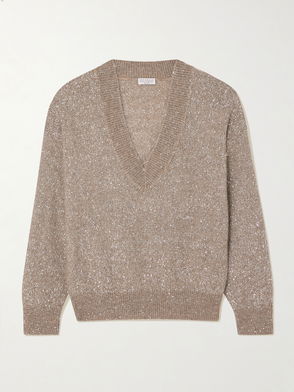 Sequined Open-Knit Linen-Blend Sweater