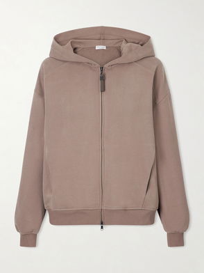 Bead-Embellished Cotton-Jersey Zip-Up Hoodie