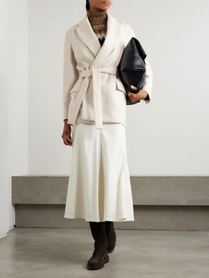 Belted Bead-embellished Houndstooth Wool-blend Jacket