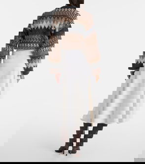 Belted Asymmetric Pleated Bead-embellished Wool-blend Wrap Skirt