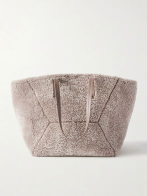 Large Bead-embellished Leather-trimmed Shearling Tote