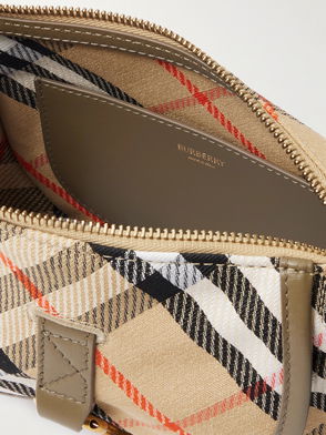 Leather-Trimmed Checked Coated-Canvas Shoulder Bag